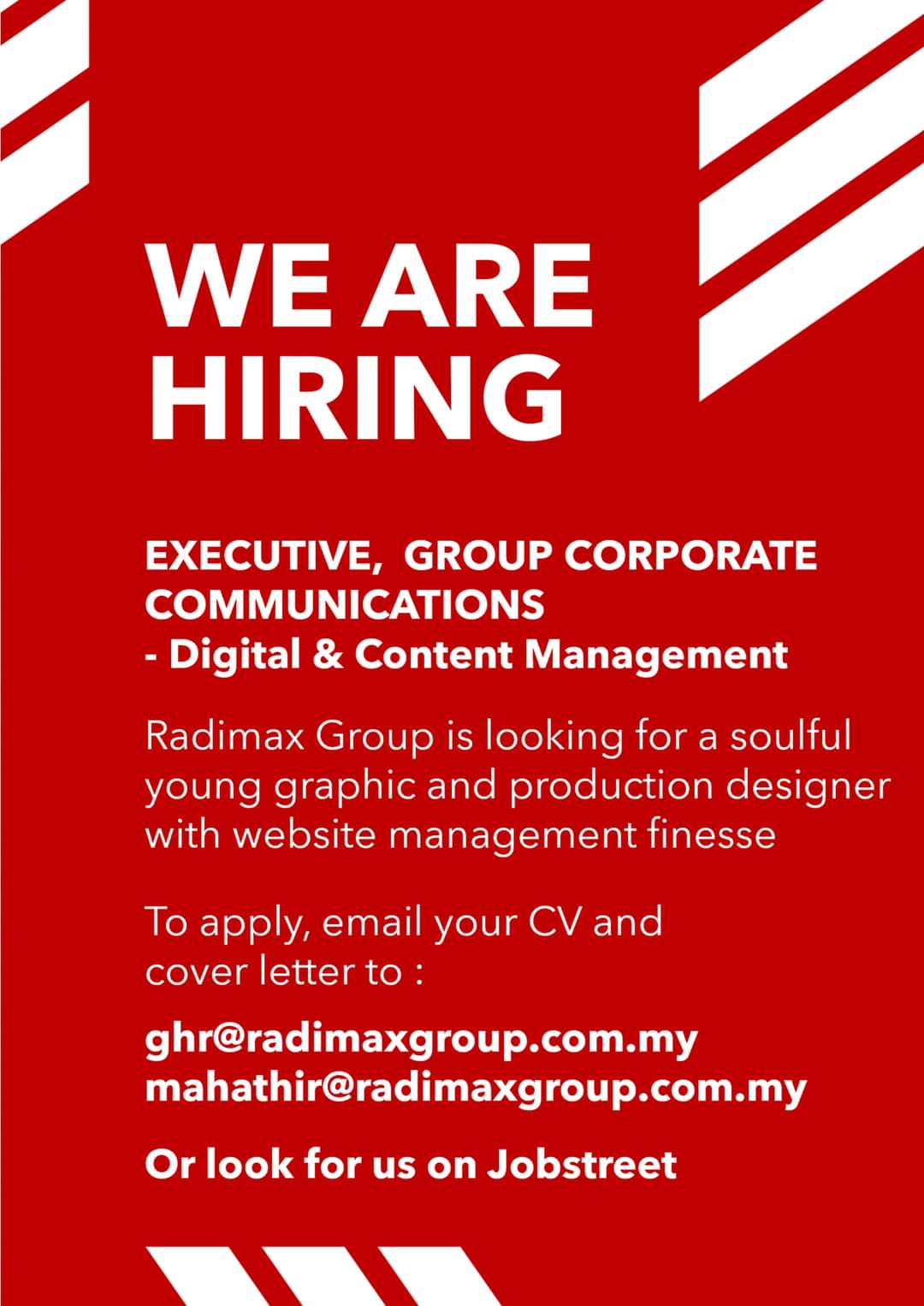 Radimax Group On Twitter We Are Hiring To Apply Email Your Cv And Cover Letter To Ghr Radimaxgroup Com My Mahathir Radimaxgroup Com My Or Look For Us On Jobstreet Good Luck Radimaxgroup Kualalumpur Wearehiring Kerjakosong Jobvacancy Https